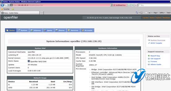 至此為止,在 Openfiler 系統(tǒng)上對(duì) iSCSI 虛擬存儲(chǔ)的配置過程完畢.