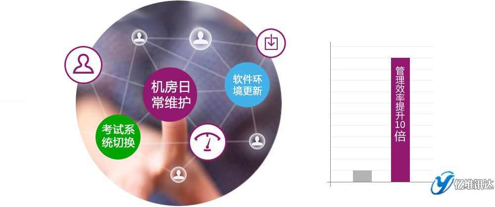 采用集中管理的方式,將考試系統切換、軟件環(huán)境更新、機房日常維護等時間至少縮短了90%。